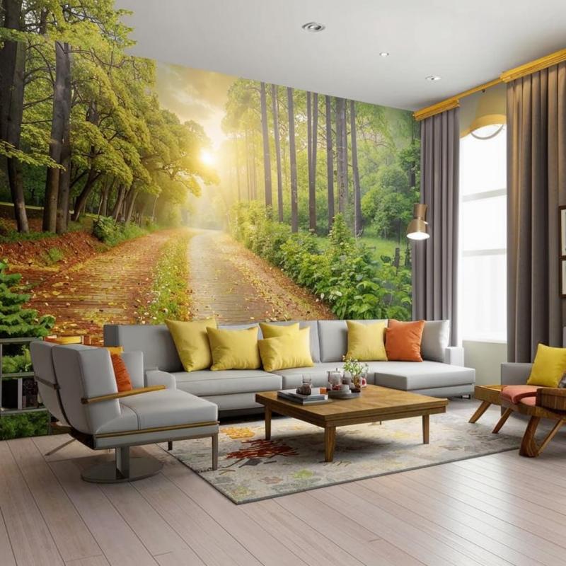 • Природные пейзажи создают атмосферу безмятежности. Обычно на них изображены леса, горы, морские побережья, цветочные поляны. Все это привносит в интерьер соответствующее настроение релаксации, благодаря созерцанию природной красоты.
