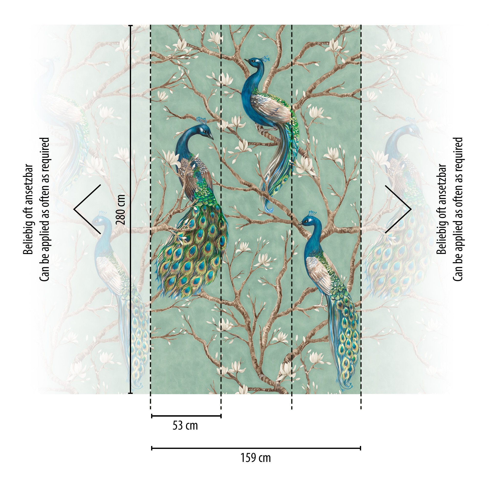 • 79223-9 Панно AS Creation 159*280, Павлины в цветущем саду